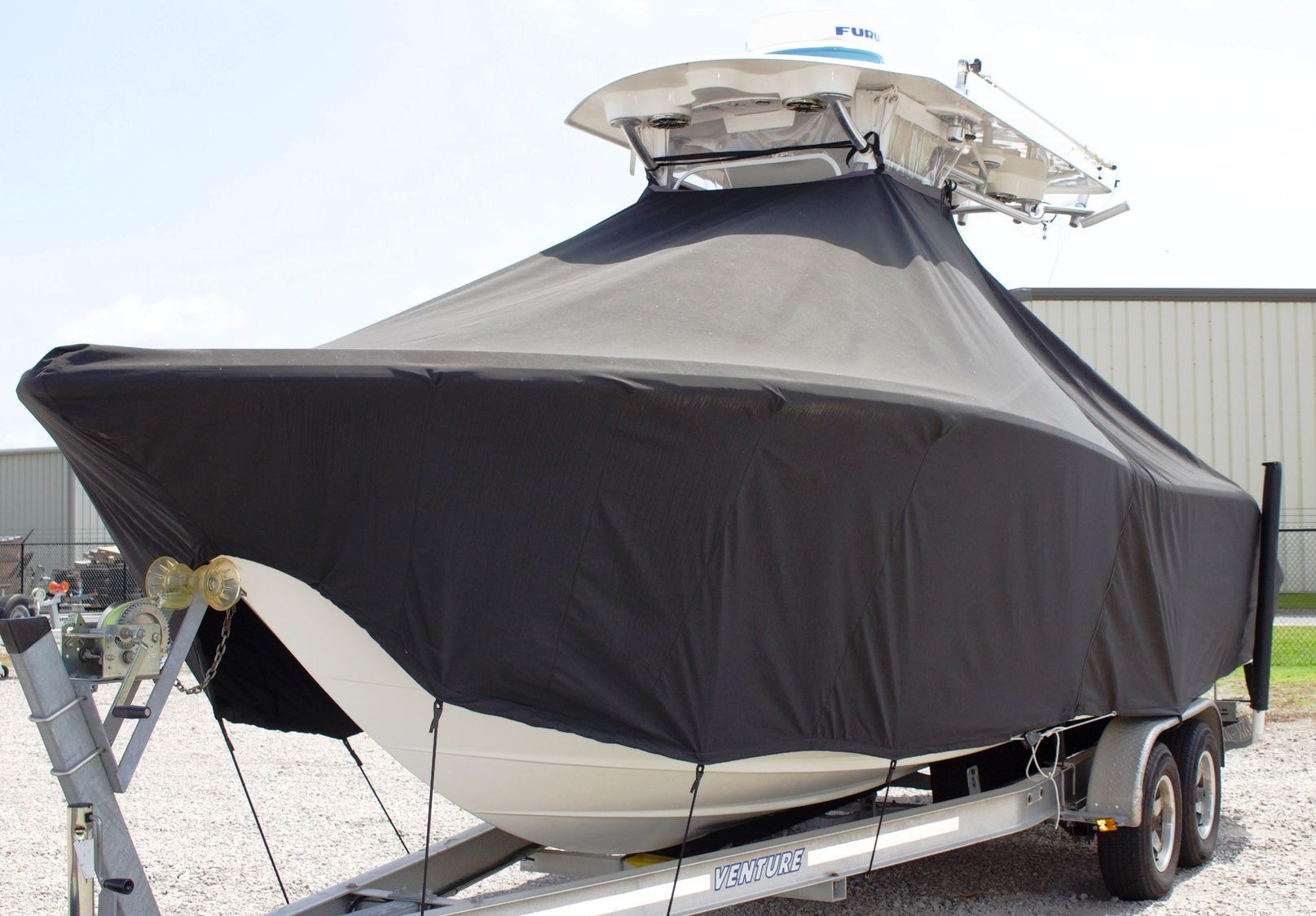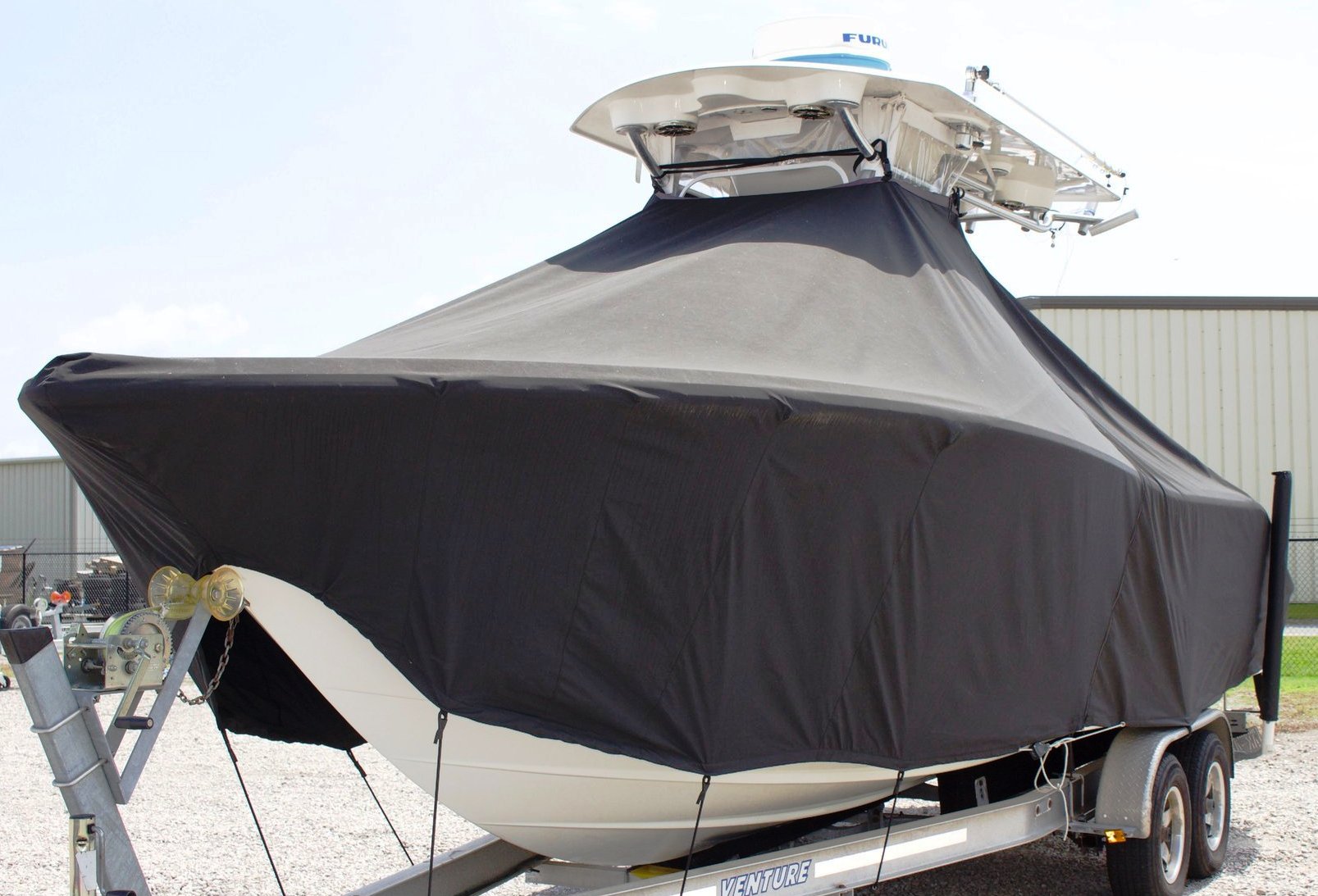 Venture 34CC, 20xx, TTopCovers™ T-Top boat cover, port front
