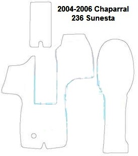 SKU# CHPL236Sunesta04-06, (3) piece Snap-In Marine Carpet Mat Set (2 Cockpit, 1 Bow) for 2004-2006 Chaparral® 236 Sunesta deck boat. Custom fit mat(s) offered in Marine Carpet (Berber, Cut Pile or Marine Tuft with AquaLoc™ or HydraBak™ backing) OR Marine Weave Vinyl (with thick Vinyl backing) (these backings do NOT degrade like some factory OEM black rubber backing), durable Sunbrella® edge binding and Stainless Steel Snaps, custom made for the 2004-2006 Chaparral®